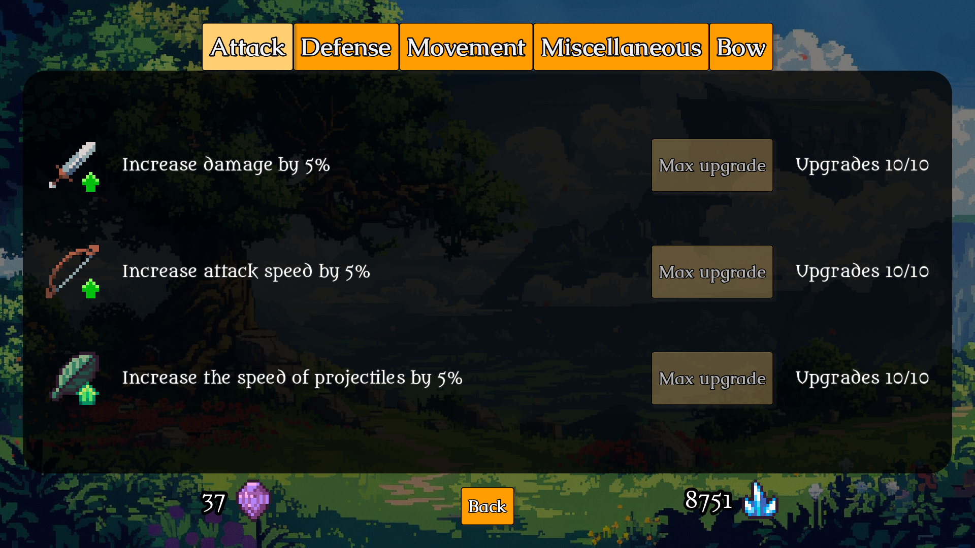 New: Character menu providing an overview of your inventory, equipment, and character stats, including all bonuses (upgrades + equipment)